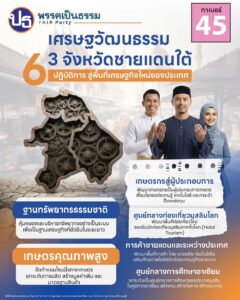 ยกระดับคุณภาพ มาตรฐาน และอุดหนุนการจัดการศึกษาในโรงเรียนเอกชนสอนศาสนาอิสลาม สถาบันศึกษาปอเนาะ และศูนย์อบรมจริยธรรมประจำมัสยิด (ตาดีกา) และศาสนาอื่นๆให้เหมาะสมและสอดคล้องกับสภาพเศรษฐกิจ สังคม อัตลักษณ์ ศาสนาอิสลาม(อื่นๆ)และความต้องการของประชาชนในท้องถิ่น จัดตั้งกองทุนส่งเสริมโรงเรียนเอกชนสอนศาสนาอิสลาม สถาบันศึกษาปอเนาะ และศูนย์อบรมจริยธรรมประจำมัสยิด (ตาดีกา) และจัดตั้งศูนย์อิสลามศึกษาประเทศไทยและของต่างศาสนิกที่แตกต่างด้นศาสนาและชาติพันธ์