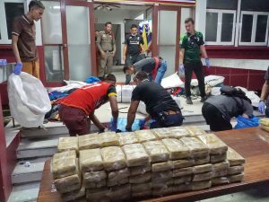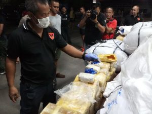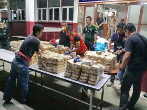 เมื่อเวลา 00.30 วันที่ 21 พ.ย.62 ผู้สื่อข่าวรายงานว่า เจ้าหน้าที่ตำรวจสืบสวนภูธรจังหวัดนราธิวาส ได้นำของกลางยาเสพติด จำนวน 8 กระสอบ ที่ยึดได้ มาตรวจสอบอย่างละเอียด ที่บริเวณด้านหน้า กองกับกับการตำรวจสืบสวนภูธรจังหวัดนราธิวาส โดยผ้ากระสอบ ระบุผู้ส่งคือ จูโนะ ปลายทางผู้รับคือ แบมัง และระบุหมายเลขโทรศัพผู้รับด้วย…เจ้าหน้าที่ได้รวมกันแกะและเปิดกระสอบ เพื่อตรวจสอบด้านใน พบเสื้อผ้ามือสองจำนวนมากพับซ้อนกันอย่างแน่นหนา เพื่อซุกซ่อนและอำพรางสิ่งผิดกฏหมาย แต่เมื่อค้นอย่างละเอียด พบยาเสพติด ประเภทยาบ้า ในแต่ละกระสอบ กระสอบละ 43 ก้อน ก้อนละจำนวน 6,000 เม็ด จำนวนยาบ้าเบื้องต้นประมาณ 2,064,000 (สองล้านหกหมื่นสี่พันเม็ดกว่าเม็ด) คิดเป็นมูลค่าประมาณกว่า 144,480,000 ล้านบาท ซึ่งเป็นชนิดยาบ้าสีชมพู่ ปั้มยี่ห้อ เป็นภาษาอังกฤษที่เม็ดยาบ้า อักษร WY