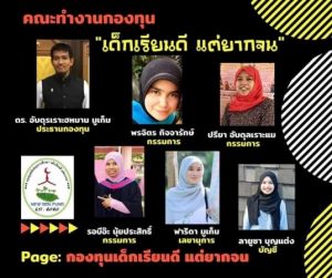 โดยมีผมคนตัวเล็กตัวน้อยได้รับความไว้วางใจจากทีมงาน เช่นอาจารย์รอบีอ๊ะ นุ้ยประสิทธิ์ พรจิตร กิจจารักษ์ ปรียา อับดุลเราะเเม ลายูชา บุญแต่ง และเลขานุการกองทุน ฟารีดา มูเก็ม “