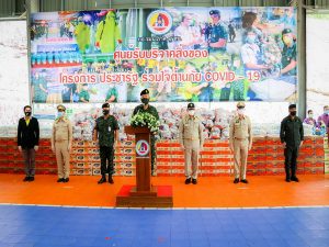 พลโท พรศักดิ์ พูลสวัสดิ์ แม่ทัพภาค 4 ผู้อำนวยการรักษาความมั่นคงภายในภาค 4 ส่วนหน้า ได้กล่าวถึงการร่วมมือของทุกส่วนทั้งภาคเอกชนต่อการแก้ไขปัญหาโควิด-19 วันนี้เป็นการระดมการช่วยเหลือเป็นน้ำใจที่ได้ร่วมช่วยกัน การมอบถุงยังชีพวันนี้เป็นรอบแรกและจะทยอยต่อเนื่อง โดยผ่านกระบวนการของสภาสันติสุขตำบลเป็นผู้กำหนดเป้าหมาย เพื่อเร่งแจกจ่ายถุงยังชีพบรรเทาความเดือนของพี่น้องประชาชน และขอเป็นกำลังใจแก่กำลังพลทุกส่วนที่ลงไปแจกจ่ายถุงยังชีพและสร้างความเข้าใจแก่ประชาชนเราจะต้องผ่านวิกฤตติในครั้งนี้ไปด้วยกัน
