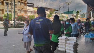 (22 เม.ย.63) ที่บริเวณหน้าร้านเบตงมินิมาร์ อ.เบตง จ.ยะลา นายกิตติ ดามาอู ผู้ประกอบการร้านเบตงมินิมาร์ พร้อมด้วยพนักงานร้าน นำข้าวกล่อง จำนวน 600 ห่อ พร้อมด้วยน้ำดื่ม 800 ขวด แจกฟรี ให้กับประชาชนที่ได้รับผลกระทบจากไวรัสโควิด-19 และผู้มีรายได้น้อย ต่างสวมหน้ากากอนามัย ต่อแถวยาว เว้นระยะห่างทางสัมคม เข้ารับข้าวกล่องและน้ำดื่ม ที่วางเรียงบนโต๊ะ นำกลับไปทานที่บ้าน โดยมีเจ้าหน้าที่ปกครอง ตำรวจ เทศกิจ กำกับดูแลจัดระเบียบ พร้อมบริการล้างมือด้วยเจลแอลกอฮอล์ และวัดอุณหภูมิความร้อน ตามประกาศศูนย์บริหารสถานการณ์โควิด – 19 จังหวัดยะลา
