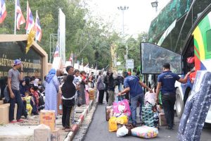 ศูนย์อำนวยการบริหารจังหวัดชายแดนภาคใต้ จ.ยะลา นำโดย พลเรือตรี สมเกียรติ ผลประยูร เลขาธิการ ศอ.บต. อำนวยความสะดวกส่งแรงงานในพื้นที่ จชต. ขึ้นรถบัสไปทำงาน ณ บริษัท cal comp electronics (Thailand Co.Ltd) อ.เขาย้อย จ.เพชรบุรี วันนี้ (11 พฤศจิกายน 63) ในโครงการเปิดพื้นที่ประเทศไทย รองรับแรงงาน จชต. สู่การมีงานทำและมีรายได้ หลังสถานการณ์โรคติดเชื้อไวรัสโคโรนา 2019 (COVID -19) จำนวนกว่า 100 คน แบ่งเป็น 2 รุ่นๆที่ 1 จำนวน 34 คน และรุ่นที่ 2 จำนวน 84 คน