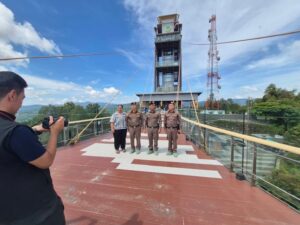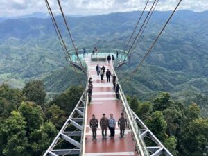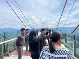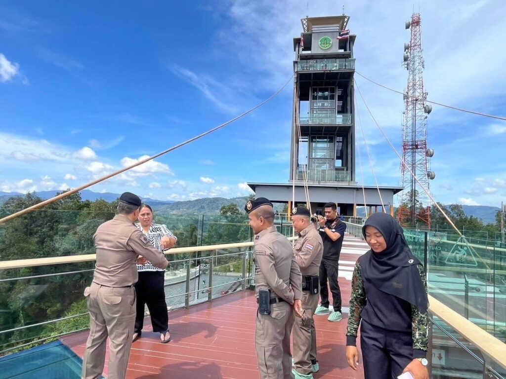 วันที่ 16 พฤศจิกายน 2568 พล.ต.ต.กองอรรถ สุวรรณขำ ผู้บังคับการตำรวจภูธรจังหวัดยะลา เยี่ยมชมสกายวอล์คอัยเยอร์เวง แหล่งท่องเที่ยวยอดนิยมของอำเภอเบตง จังหวัดยะลา พร้อมสร้างพื้นที่ปลอดภัยในแหล่งท่องเที่ยว เสริมความเชื่อมั่นให้กับนักท่องเที่ยวชาวไทยและชาวต่างชาติ โดยมี พ.ต.อ.ทศพล พลอยงาม ผกก.สภ.อัยเยอร์เวง, พ.ต.ท.สมหมาย มะณีจันทร์ รอง ผกก.ป.สภ.อัยเยอร์เวง, พ.ต.ท.วินัย แซ่จิว สวป.สภ.อัยเยอร์เวง ให้การต้อนรับ