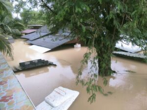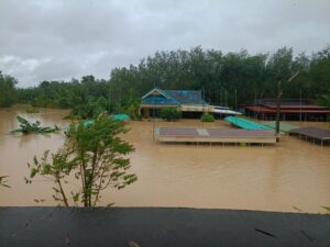 จะนะ สงขลา – เมื่อวันจันทร์ที่ 24 พฤศจิกายน 2568 อำเภอจะนะ จังหวัดสงขลา ได้เผชิญกับ มหาอุทกภัยครั้งรุนแรงที่สุดในรอบกว่า 100 ปี โดยเฉพาะอย่างยิ่งที่ บ้านนนท์ หมู่ 5 ตำบลตลิ่งชัน ซึ่งเชื่อกันว่า เป็นพื้นที่ที่ได้รับผลกระทบจากน้ำท่วม(น่าจะ)หนักที่สุดของอำเภอในครั้งนี้ โดยระดับน้ำสูงสุดถึง 3-4 เมตร