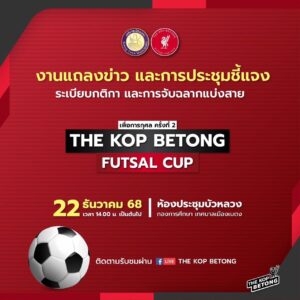เทศบาลเมืองเบตง ร่วมกับ THE KOP BETONG เตรียมจัดการแข่งขันกีฬาฟุตซอลต้านภัยยาเสพติด (THE KOP BETONG FUTSAL CUP) ระหว่างวันที่ 29 – 31 ธันวาคม 2568