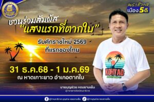 จึงขอเชิญชวนพี่น้องประชาชนและนักท่องเที่ยว มาร่วมเป็นส่วนหนึ่งของหน้าประวัติศาสตร์ ในการรับแสงแรกของปี 2569 ที่ อ.ตากใบ จ.นราธิวาส