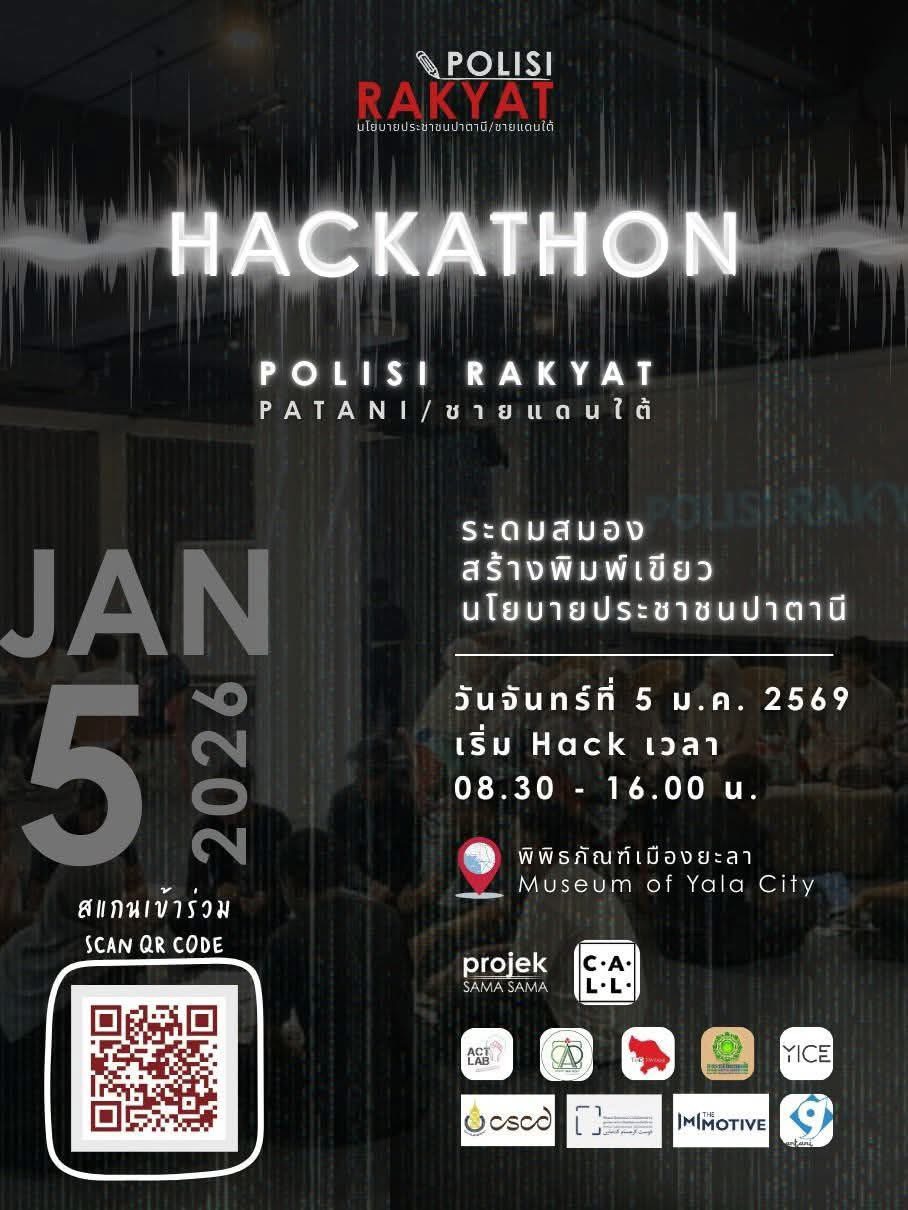 กิจกรรม “HACKATHON POLISI RAKYAT: ระดมสมองสร้างพิมพ์เขียวนโยบายประชาชนปาตานี/ชายแดนใต้” จัดขึ้นเพื่อเป็นพื้นที่กลางในการ “Hack” ไอเดียสดใหม่ เพื่อยกระดับปัญหาในพื้นที่ให้กลายเป็นข้อเสนอนโยบายที่เป็นรูปธรรม ภายใต้ชื่อ POLISI RAKYAT เป้าหมายหลักของงานนี้ไม่ใช่เพียงแค่การเสวนา แต่คือการสร้าง “พิมพ์เขียวนโยบาย” ที่พร้อมส่งต่อถึงพรรคการเมือง และเป็นเสียงสะท้อนสำคัญในการผลักดันการแก้ไขรัฐธรรมนูญปี 2560 ให้สอดคล้องกับบริบทและความต้องการของประชาชนในพื้นที่อย่างแท้จริง
