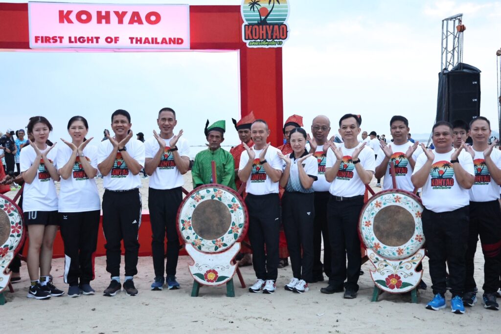 ภายในงาน ผู้ว่าราชการจังหวัดนราธิวาสได้เป็นประธาน ตีกลองบานอ ซึ่งเป็นเครื่องดนตรีอัตลักษณ์ท้องถิ่นอันทรงคุณค่า เพื่อลั่นกลองชัยต้อนรับปี 2569 ด้วยความเป็นสิริมงคล ก่อนจะเข้าสู่ไฮไลต์สำคัญคือการแข่งขันกีฬาชายหาด “KOHYAO BEACH RUN”