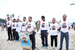 จากนั้นผู้เข้าร่วมงานได้ร่วมกันร้องเพลงชาติไทยอย่างพร้อมเพรียงริมชายหาด และเป็นการให้สัญญาณปล่อยตัวนักวิ่งเลียบไปตามถนนชายฝั่งริมทะเลที่สวยงามของชายหาดเกาะยาว