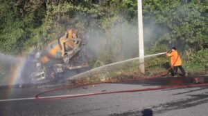 จุดเกิดเหตุเป็นทางโค้งลงเขา กลางถนนพบ รถจักรยานยนต์บิ๊กไบค์ ยี่ห้อ บีเอ็มดับบิว หมายเลขทะเบียน 6ขอ 1553 กทม. มีไฟลุกท่วม ห่างไปประมาณ 5 เมตร พบนายฟิรฮาน อารง อายุ 22 ปี คนขับบิ๊กไบค์ ถูกไฟคลอกตามร่างกาย นอนได้รับบาดเจ็บอยู่ จึงช่วยกันดับไฟ และนำส่งโรงพยาบาลเบตง แต่ก็ทนพิษบาดแผลไม่ไหวเสียชีวิตในเวลาต่อมา และบริเวณในป่าข้างทาง มี รถโม่ปูน ถูกไฟไหม้เสียหาย เจ้าหน้าที่ดับเพลิงจึงลากสายฉีดน้ำจนไฟดับ