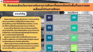 | 1. ทำ Public Hearing | ใช้กลไกมาตรา 7 รับฟังความต้องการของประชาชนว่าอยากเห็น “เมืองการศึกษา” ในรูปแบบใด (เช่น เน้นศาสนาควบคู่สามัญ หรือเน้นภาษา) |
