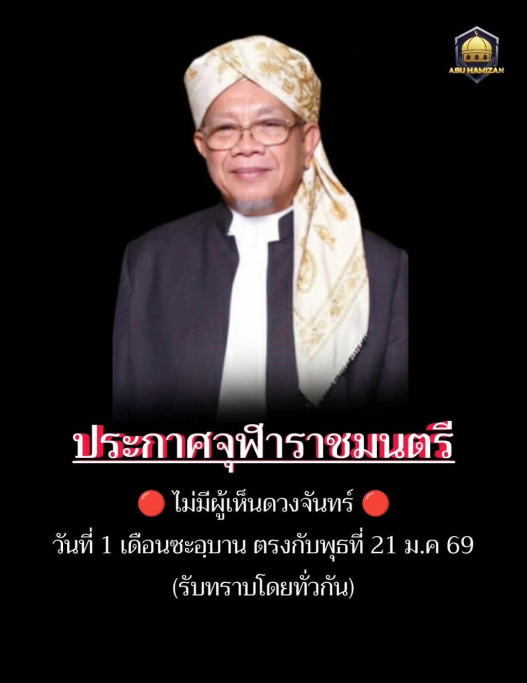 | ถ้ามีผู้เห็นดวงจันทร์ | เดือนซะอฺบานจะมี 29 วัน | วันพฤหัสบดีที่ 19 กุมภาพันธ์ 2569 |