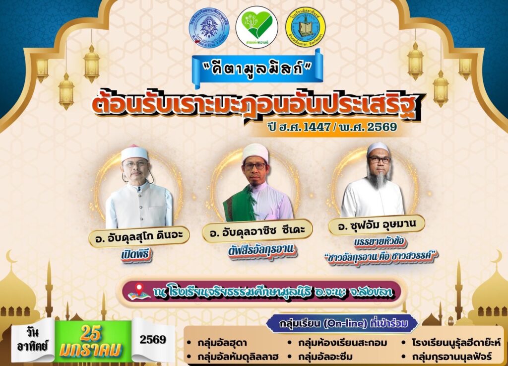[จะนะ, สงขลา] – เมื่อวันที่ 25 มกราคม 2569 ณ โรงเรียนจริยธรรมศึกษามูลนิธิ ตำบลสะกอม อำเภอจะนะ จังหวัดสงขลา ได้มีการจัดงาน “วันคีตามุลมิสก์” เพื่อรวมพลังเหล่าคุณแม่และผู้ศรัทธา เตรียมความพร้อมเข้าสู่เดือนรอมฎอนอันทรงเกียรติ โดยผู้เขียนชูประเด็นความสำคัญของอัลกุรอานในฐานะ “คู่มือการเลี้ยงลูกในโลกไซเบอร์” ท่ามกลางกระแสการเปลี่ยนผ่านของเทคโนโลยี AI