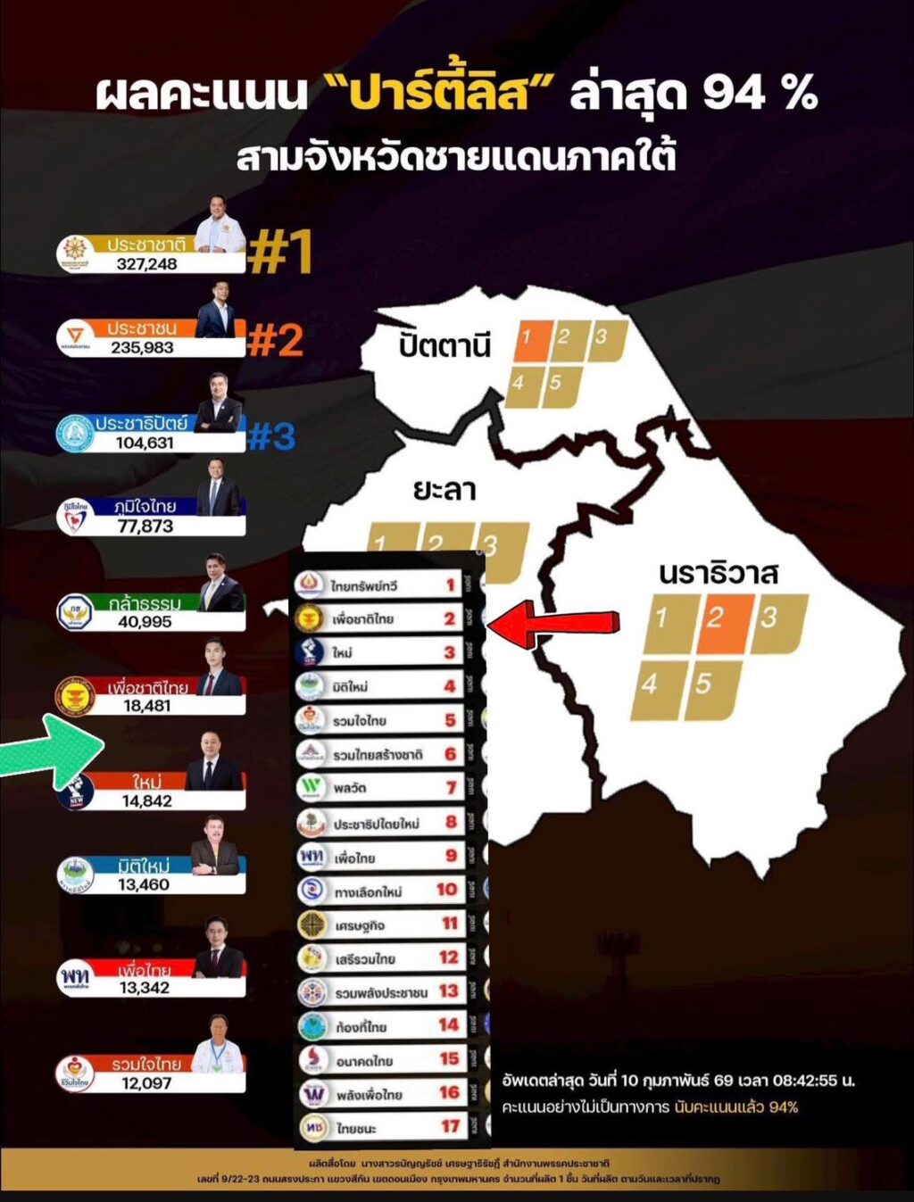 - สายประชาชาติ vs กล้าธรรม: พรรคประชาชาติ ที่เคยครองความนิยมอันดับหนึ่งในกลุ่มพี่น้องมุสลิม ถูกแบ่งคะแนนไปโดย พรรคกล้าธรรม อย่างมีนัยสำคัญ นักวิเคราะห์มองว่าหากไม่มีพรรคกล้าธรรม คะแนนก้อนใหญ่นี้จะไหลกลับสู่พรรคประชาชาติเกือบทั้งหมด