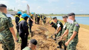 พร้อมกันนี้ ผู้เข้าอบรมร่วมกันการปลูกหญ้าแฝก จำนวน 5,000 ต้น รอบบริเวณสระกักเก็บน้ำ กรมทหารราบที่ 151 ค่ายกัลยาณิวัฒนา อำเภอเมือง จังหวัดนราธิวาส กรมทหารราบที่ 151 ค่ายกัลยาณิวัฒนา และมีพันเอกทวีรัตน์ เบญจาทิกุล รองผู้บังคับการกรมทหารราบที่ 151 เป็นประธานในพิธีปิดโครงการในครั้งนี้