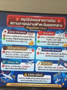 ตรวจสอบสถานะเที่ยวบินแบบ Real-time: เนื่องจากสถานการณ์ในภูมิภาคอ่าวและตะวันออกกลางมีความผันผวนสูง สายการบินอย่าง Kuwait Airways, Emirates, Qatar Airways หรือสายการบินที่ต้องบินผ่านน่านฟ้าที่มีความขัดแย้ง อาจมีการปรับเปลี่ยนเส้นทางหรือยกเลิกกะทันหัน
