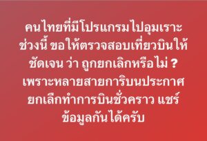 การติดต่อบริษัททัวร์: ผู้ประกอบการอุมเราะห์ควรประสานงานใกล้ชิดกับสายการบิน และเตรียมแผนสำรอง (Contingency Plan) ในการดูแลที่พักหรือการเยียวยาเบื้องต้นให้กับฮุจญาจ